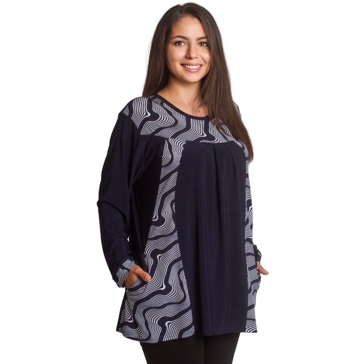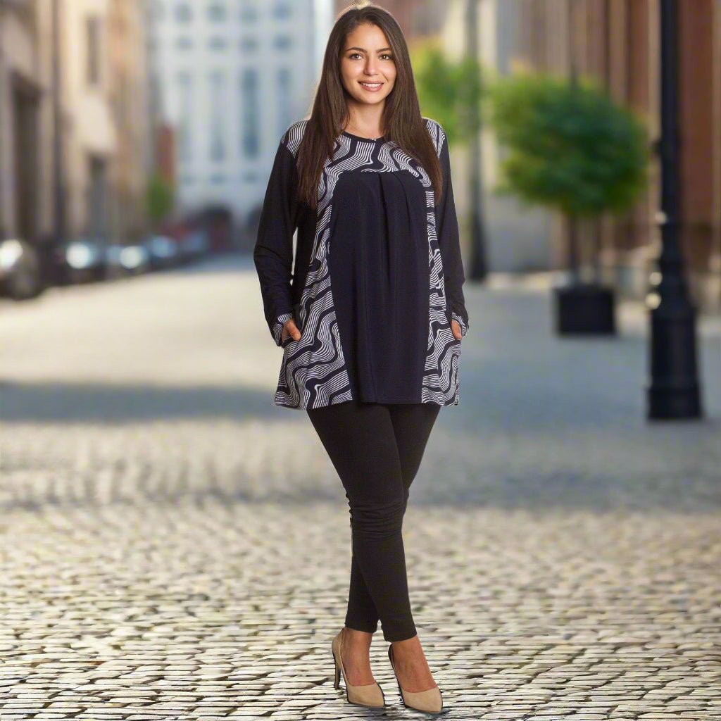 Radiază încredere și stil cu această tunică elegantă, special concepută pentru doamnele cu forme voluptuoase. Modelul combină șifonul vaporos cu un maiou cusut, care oferă confort și opacitate maxime. Croiul lejer și mânecile 3/4 adaugă feminitate și lejeritate, în timp ce imprimeul floral izbitor în roșu intens pe o bază neagră creează un aspect superb, potrivit pentru ocazii formale, sărbători și momente speciale.
