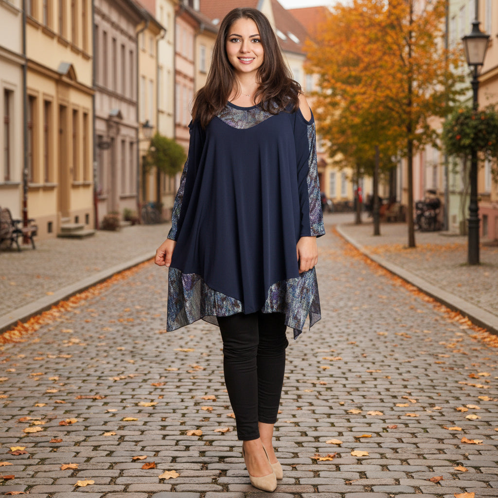 Tunică asimetrică pentru femei cu broderie artistică - Model lejer