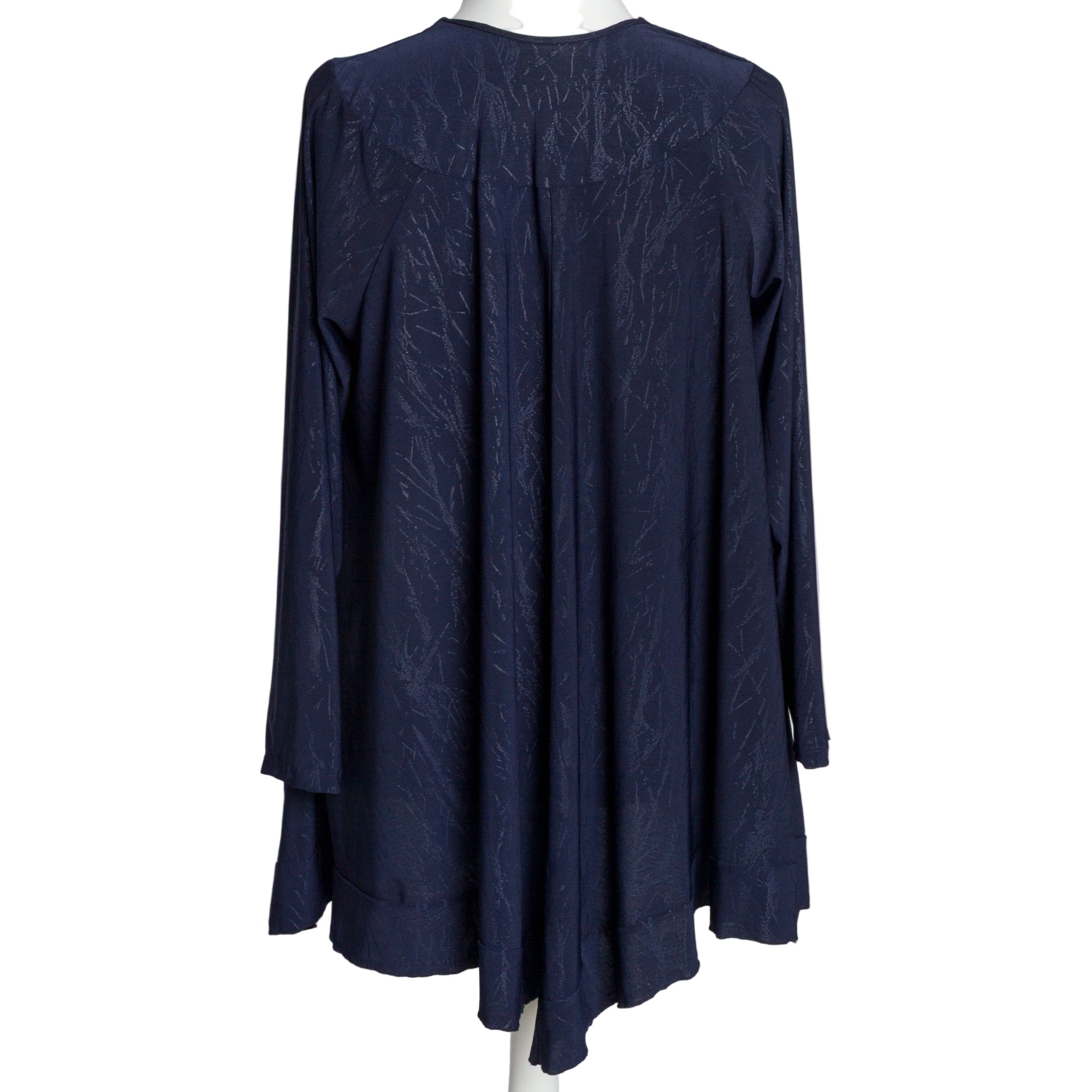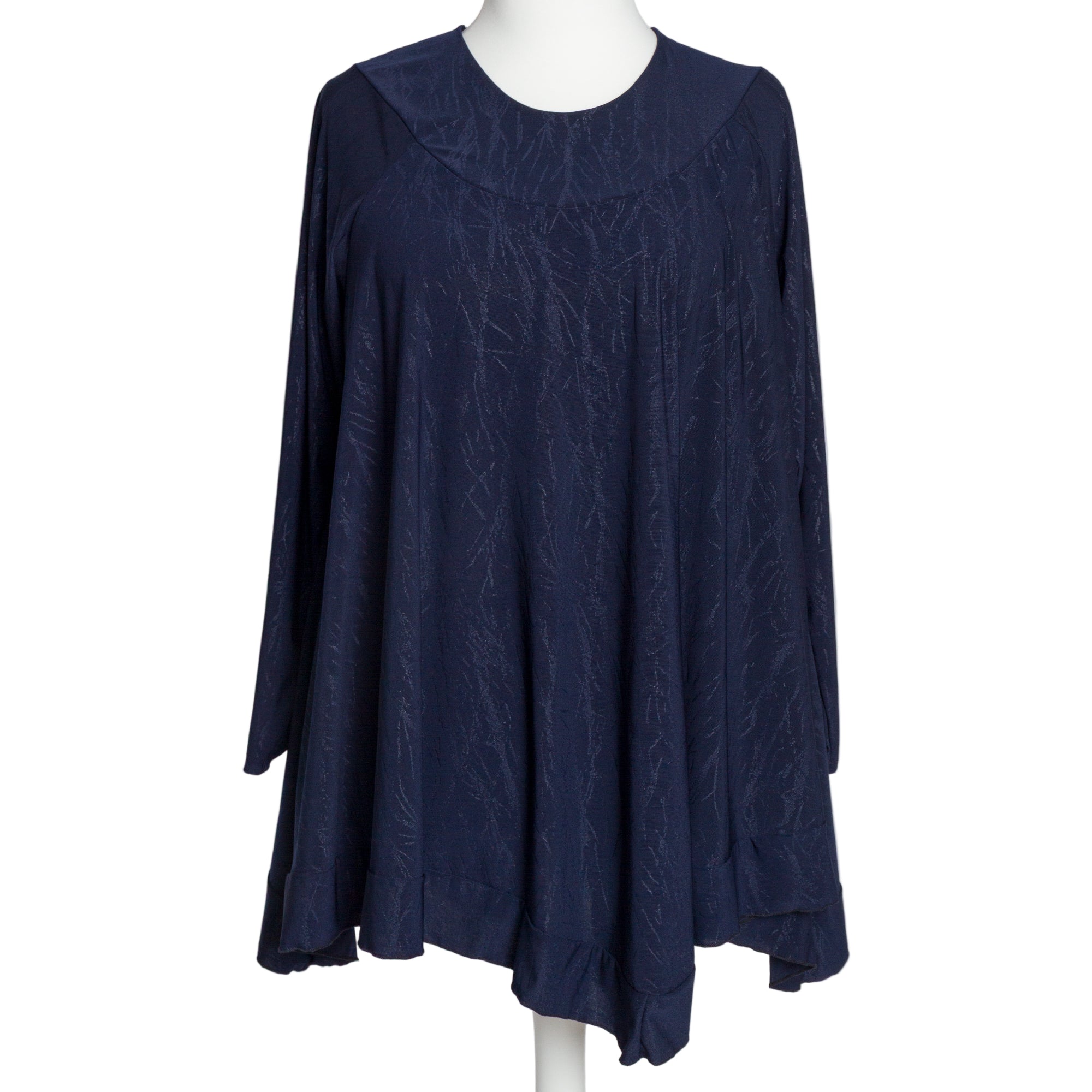 Adaugă culoare și eleganță ținutei tale cu această tunică lejeră în mărimi maxi. Modelul prezintă un imprimeu superb în tonuri bogate de verde și albastru, completat de un accent diagonal albastru închis din țesătură satinată, care adaugă rafinament și alungește vizual silueta. Croiul este lejer și confortabil, cu decolteu rotund și mâneci scurte - o alegere ideală atât pentru ocazii de zi cu zi, cât și pentru ocazii mai formale.