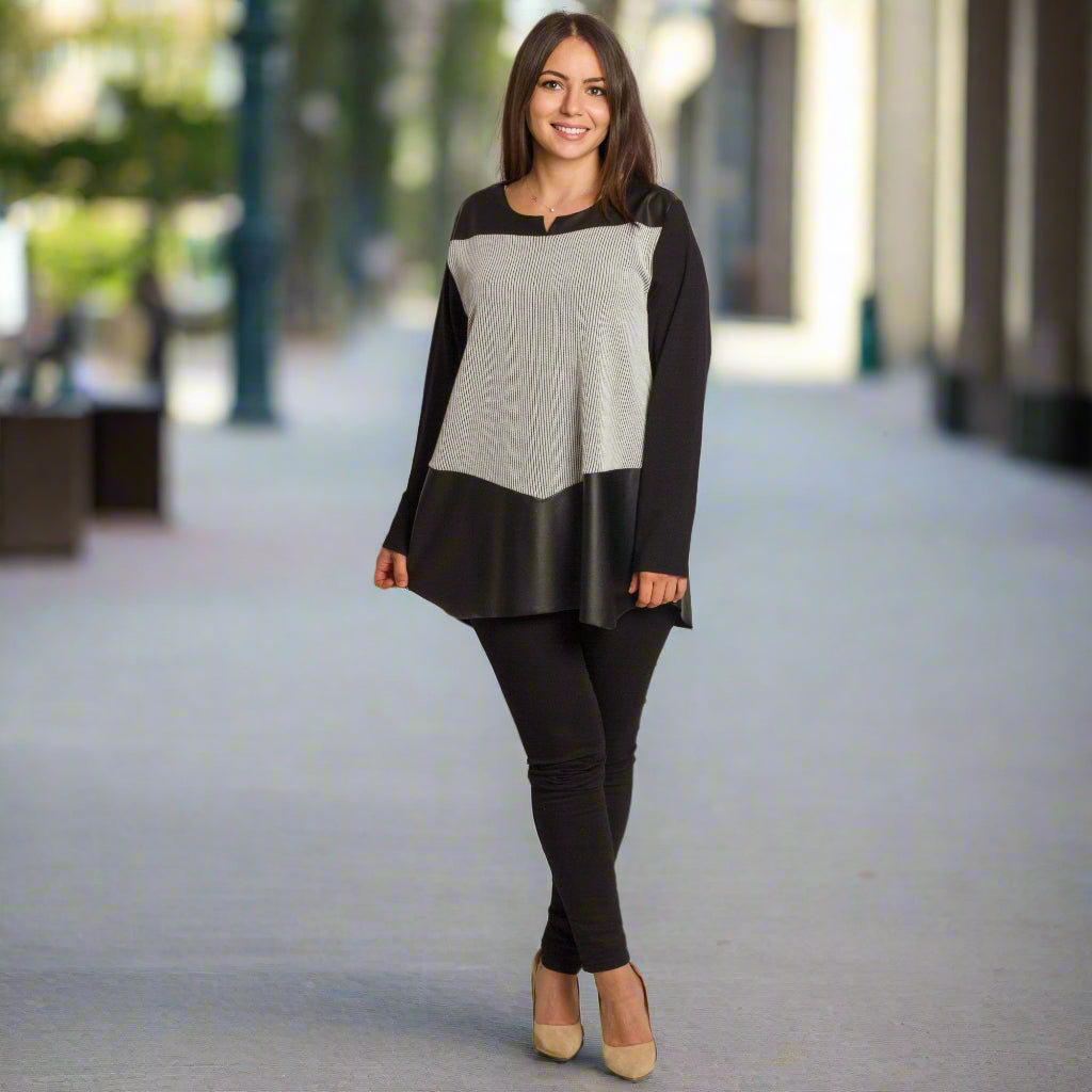 Răsfață-te cu stil și confort cu acest set elegant din două piese, potrivit pentru sezonul primăvară-vară. Bluza are un model floral în tonuri de verde și albastru și se termină cu un tiv asimetric spectaculos. Croiul este lejer, cu decolteu rotund și mâneci scurte, asigurând ușurință în mișcare. Pantalonii au o linie lejeră și o bandă elastică confortabilă în talie, ce garantează o potrivire perfectă pe corp. Potrivit atât pentru ocazii formale, cât și pentru viața de zi cu zi.
