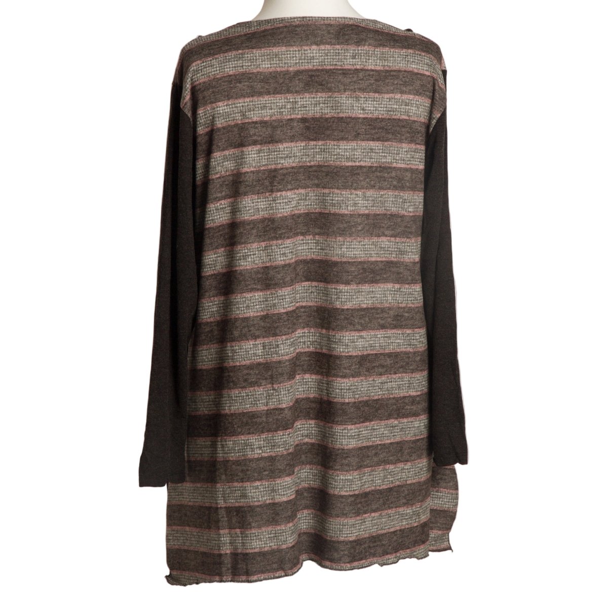 Adu prospețime și confort stilului tău de zi cu zi cu această tunică colorată în mărimi maxi. Confecționată din material moale și elastic, modelul are o croială lejeră și confortabilă, care cade liber în jurul corpului. Tunica are buzunare practice, legături la decolteu și o bordură decorativă neagră care adaugă un accent elegant. Potrivită pentru sezonul primăvară-vară.
