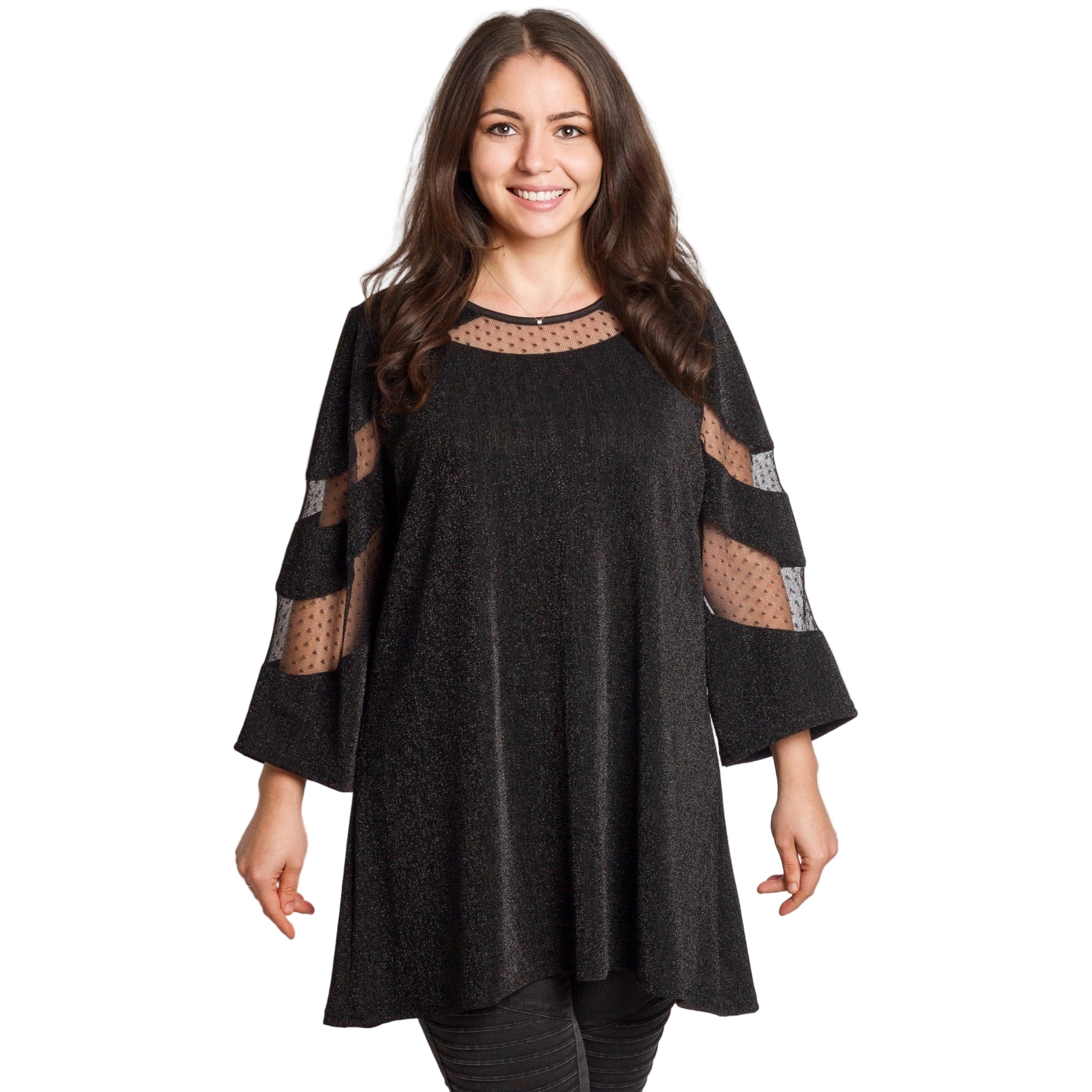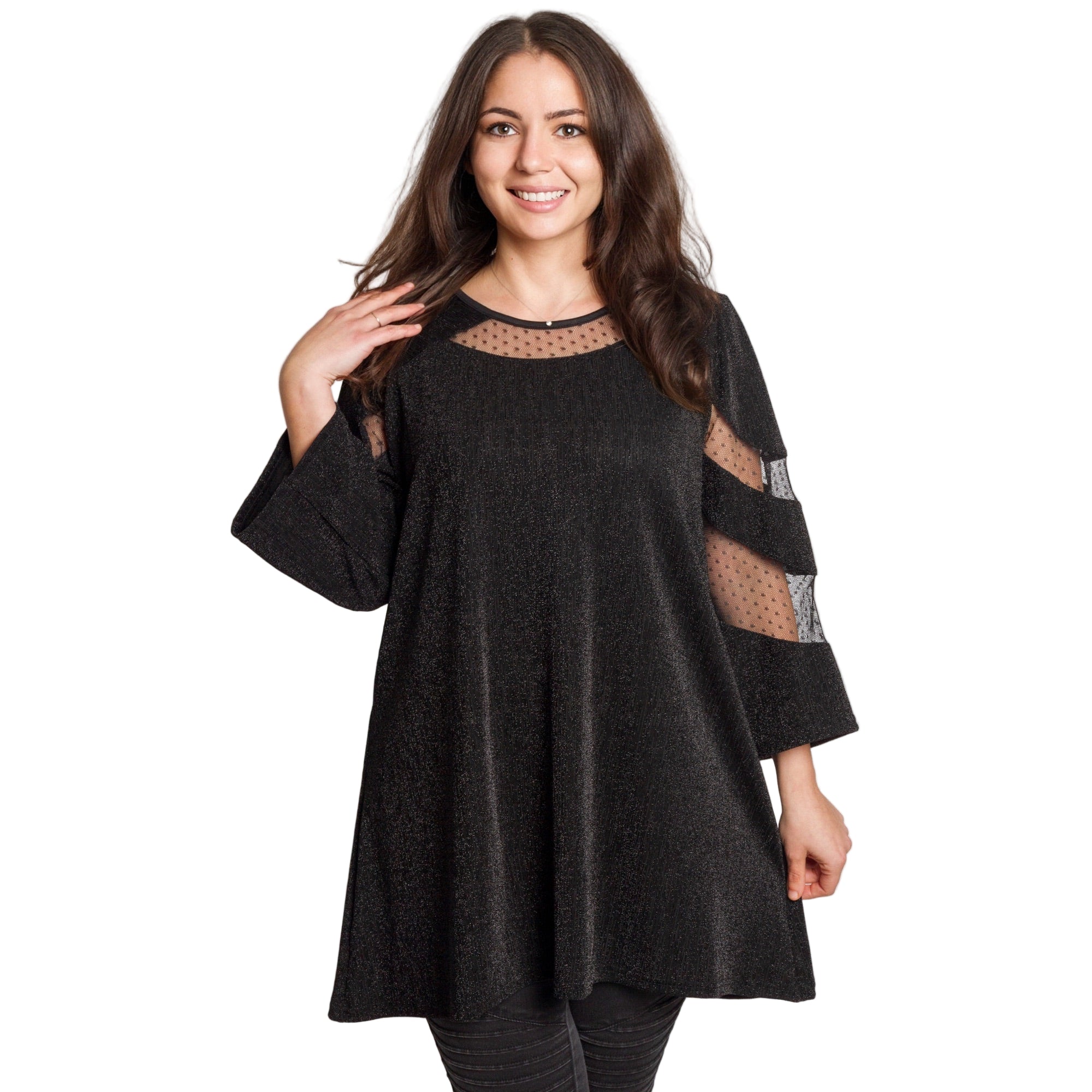Adaugă culoare și eleganță ținutei tale cu această tunică lejeră în mărimi maxi. Modelul prezintă un imprimeu superb în tonuri bogate de verde și albastru, completat de un accent diagonal albastru închis din țesătură satinată, care adaugă rafinament și alungește vizual silueta. Croiul este lejer și confortabil, cu decolteu rotund și mâneci scurte - o alegere ideală atât pentru ocazii de zi cu zi, cât și pentru ocazii mai formale.
