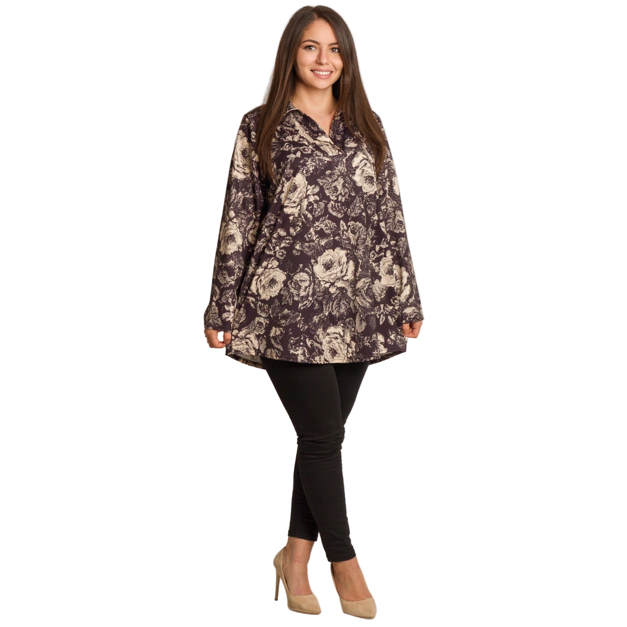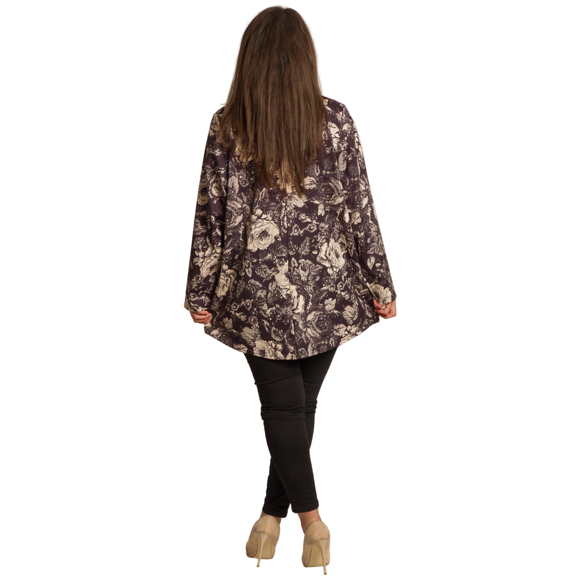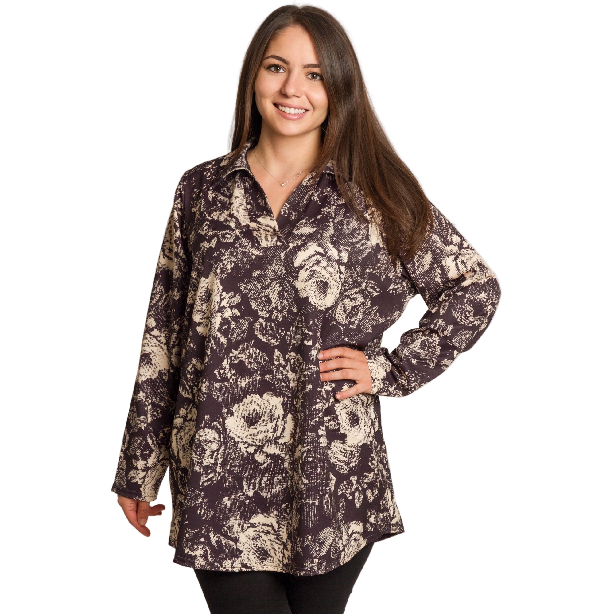 Radiază încredere și stil cu această tunică elegantă, special concepută pentru doamnele cu forme voluptuoase. Modelul combină șifonul vaporos cu un maiou cusut, care oferă confort și opacitate maxime. Croiul lejer și mânecile 3/4 adaugă feminitate și lejeritate, în timp ce imprimeul floral izbitor în roșu intens pe o bază neagră creează un aspect superb, potrivit pentru ocazii formale, sărbători și momente speciale.