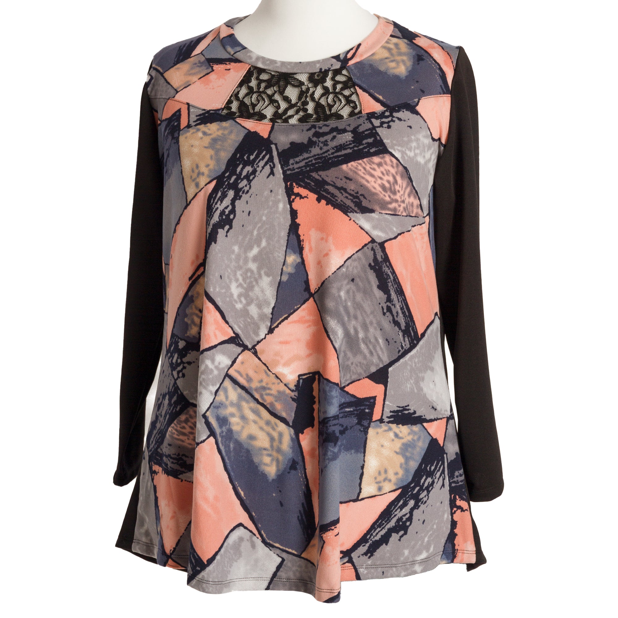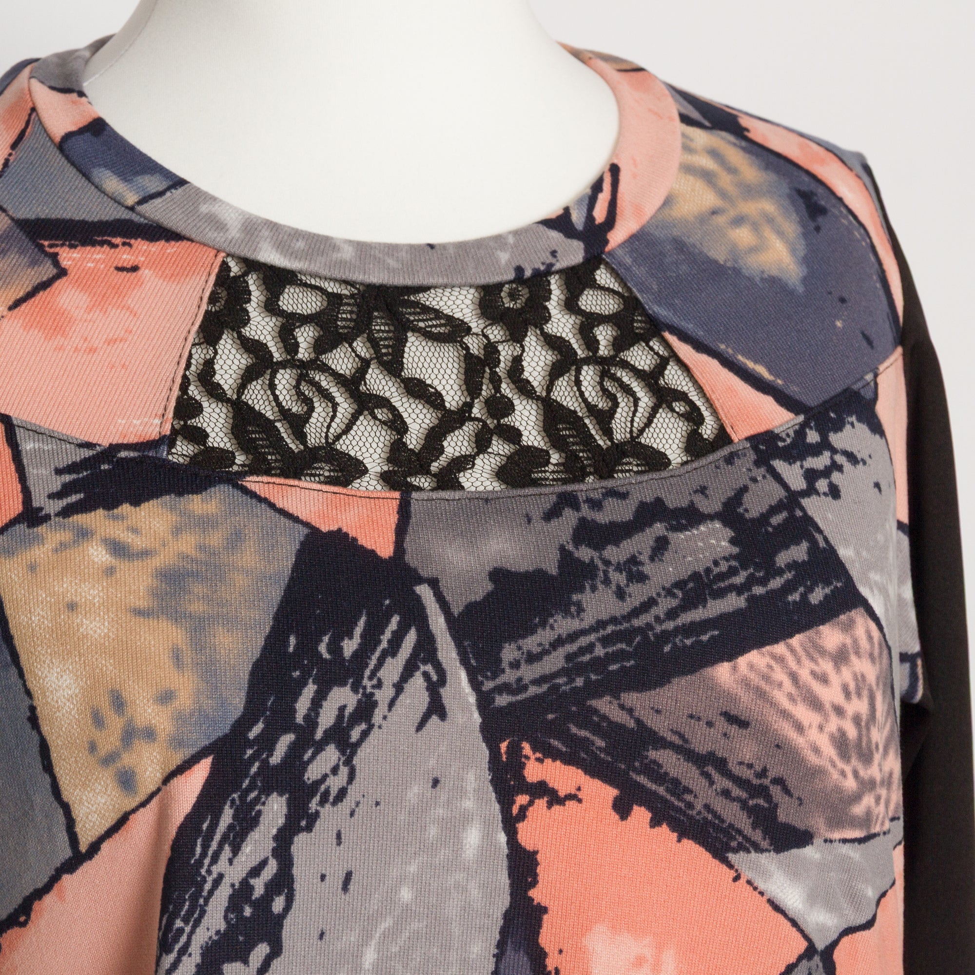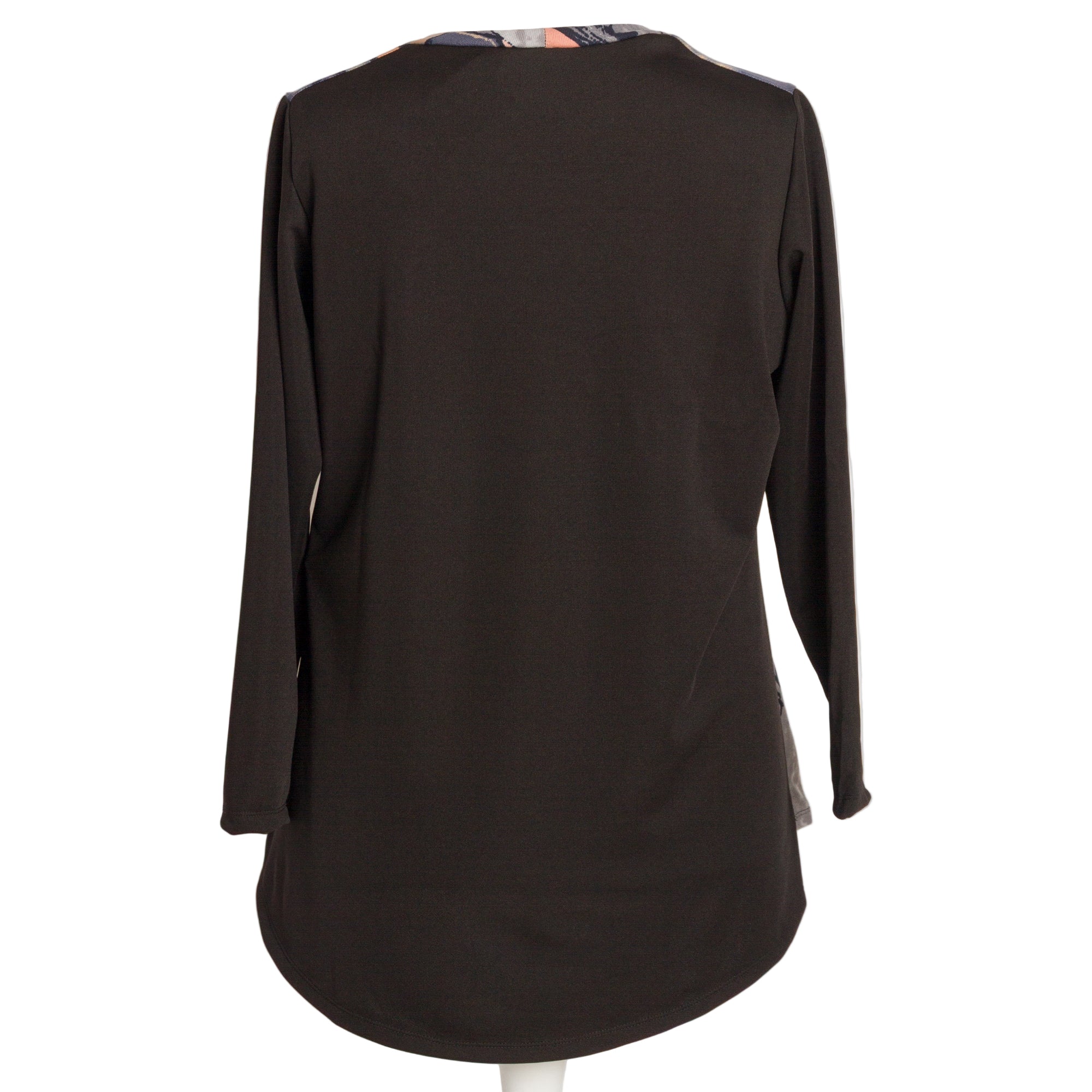 Adaugă culoare și eleganță ținutei tale cu această tunică lejeră în mărimi maxi. Modelul prezintă un imprimeu superb în tonuri bogate de verde și albastru, completat de un accent diagonal albastru închis din țesătură satinată, care adaugă rafinament și alungește vizual silueta. Croiul este lejer și confortabil, cu decolteu rotund și mâneci scurte - o alegere ideală atât pentru ocazii de zi cu zi, cât și pentru ocazii mai formale.