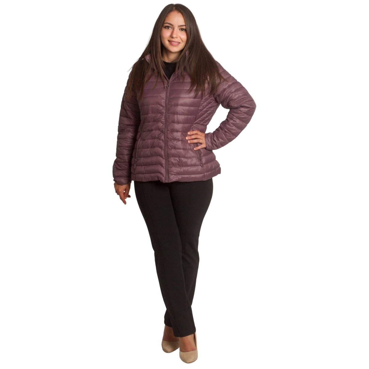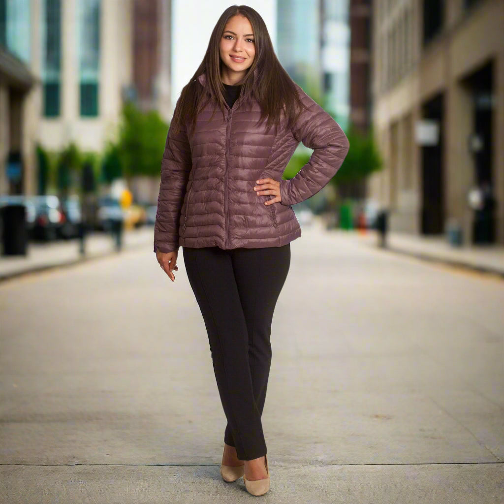 Jachetă de damă din burete cu glugă și buzunare