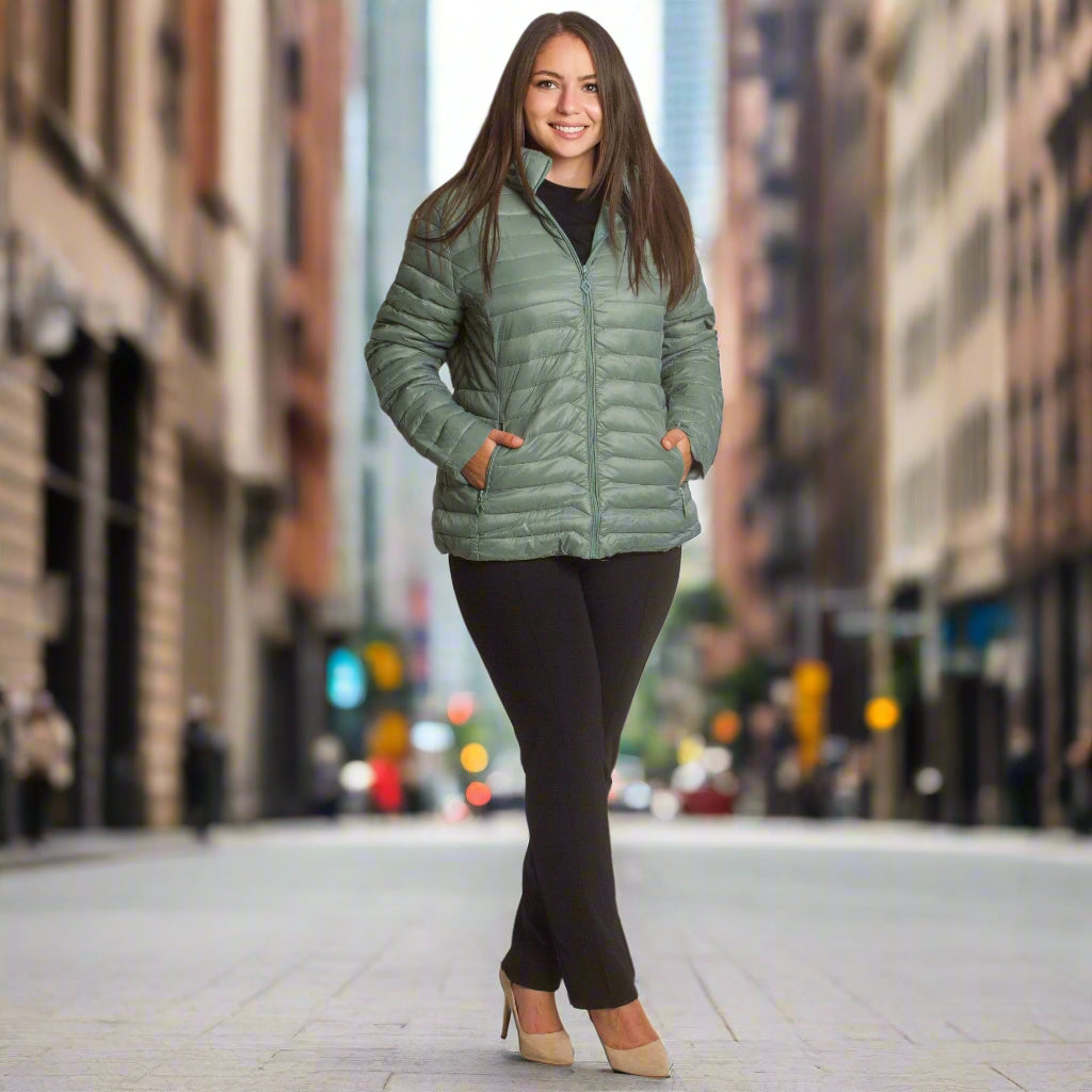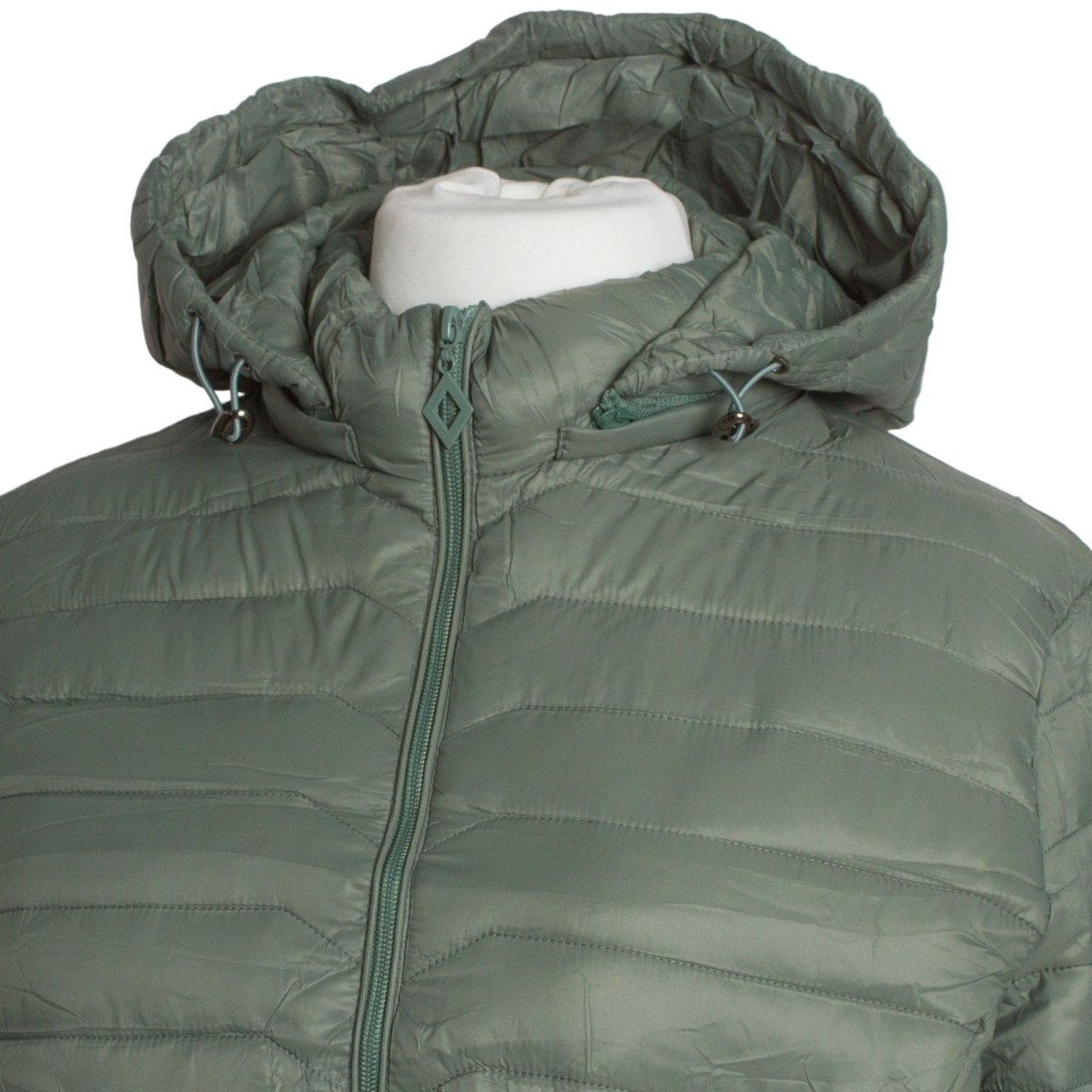 Jachetă de damă din burete bouclé, într-o elegantă culoare verde măsliniu, confecționată din 70% poliamidă, 25% poliester și 5% elastan. Modelul are glugă și buzunare, ideală pentru sezonul toamnă-iarnă. O alegere practică și elegantă atât pentru viața de zi cu zi, cât și pentru ocazii formale.